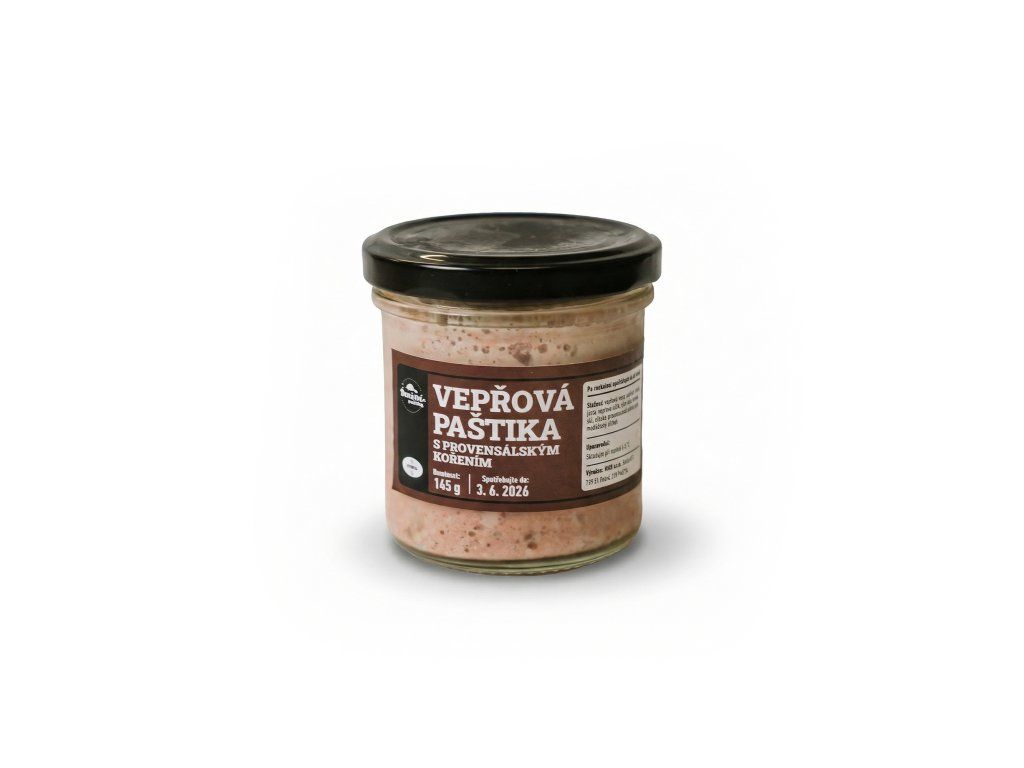 Složení: vepřové maso, vepřový výpek, játra, vepřové kůže, bílé víno, česnek, sůl, cibule, provensalské koření, pepř, muškátový oříšek